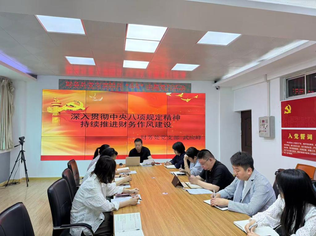 按照党中央、省委和市委部署要求,根据学院关于开展深入贯彻中央八项规定精神学习教育工作安排,4月30日上午,财务处召开深入贯彻中央八项规定精神学习教育集体学习研讨会。会议由支部书记武应峰主持。