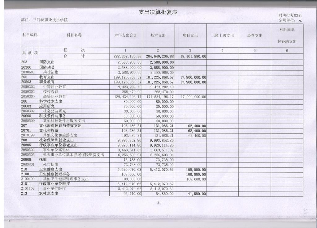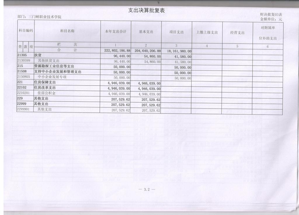 3、支出决算批复表
