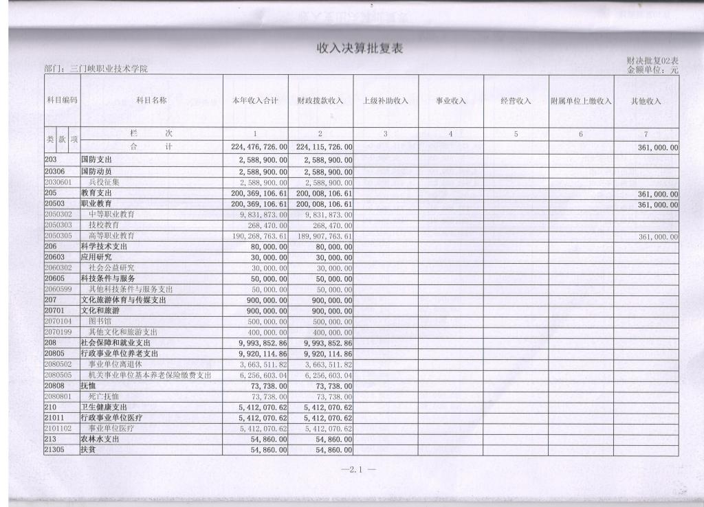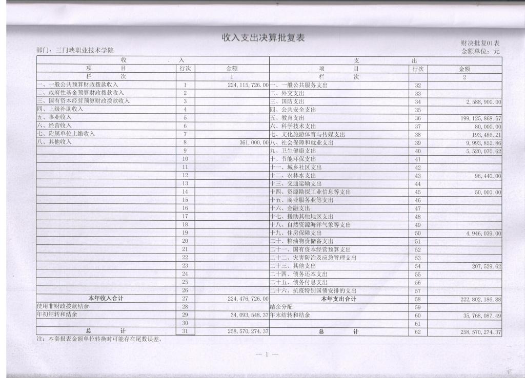1、收入支出决算批复表