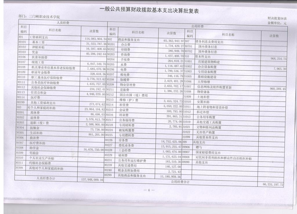 6、一般公共预算财政拨款基本支出决算批复表