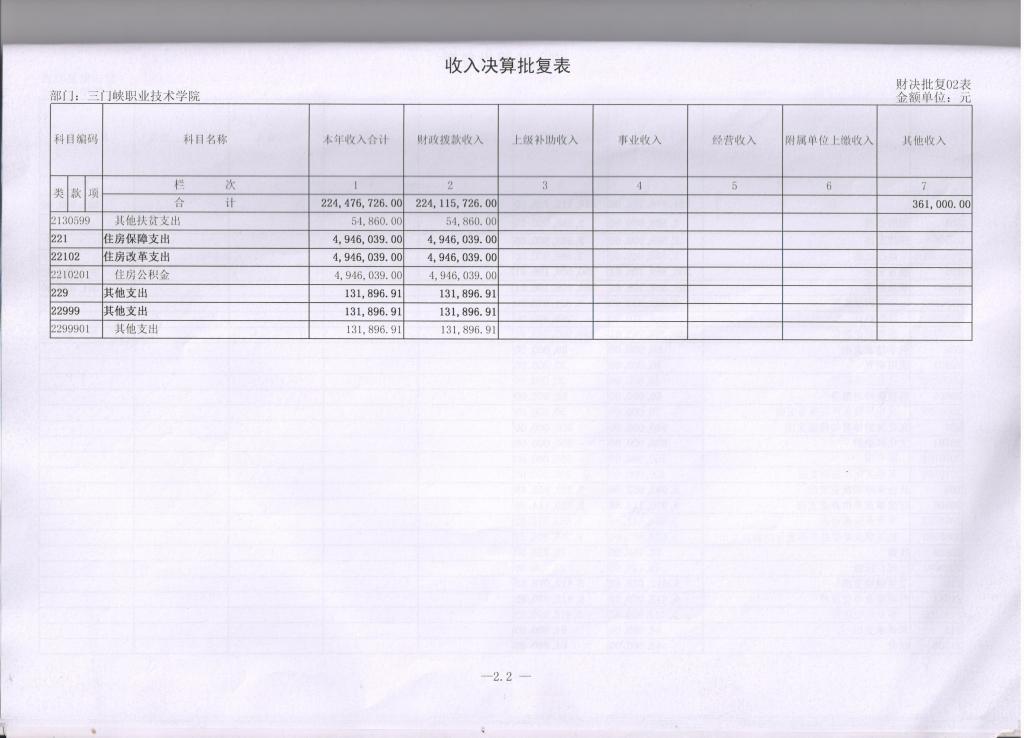 2、收入决算批复表