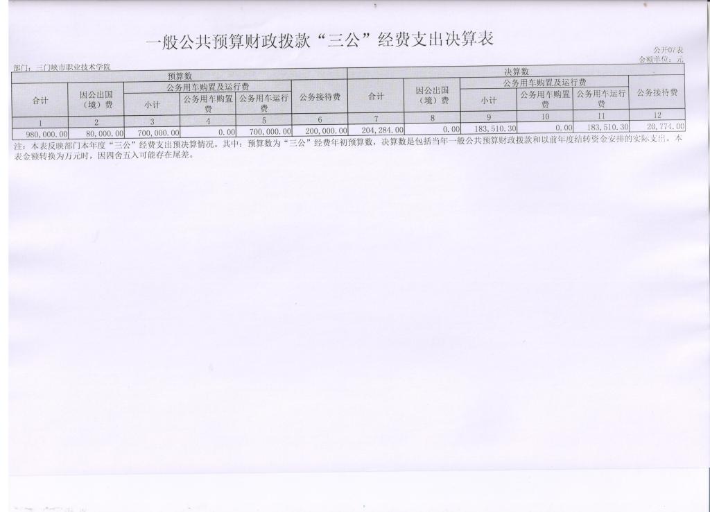 7、一般公共预算财政拨款“三公”经费支出决算表