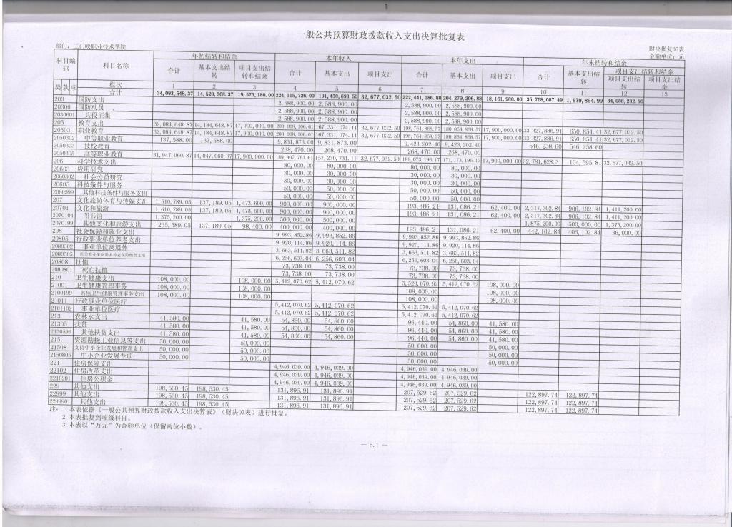5、一般公共预算财政拨款支出决算批复表