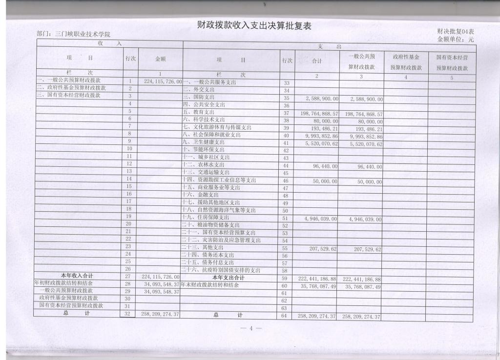 4、财政拨款收入支出决算批复表